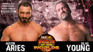 Silas catches Aries during a dropkick attempt, hits a forward roll Samoan Drop followed by a springboard moonsault but Aries gets a foot on the rope. Young then goes to use the TV belt, the ref stops him and Aries locks in the Last Chancery, but Silas gets to the ropes.